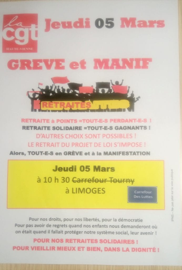 Jeudi 5 mars : Grève et manif à 10h30 carrefour des Luttes !