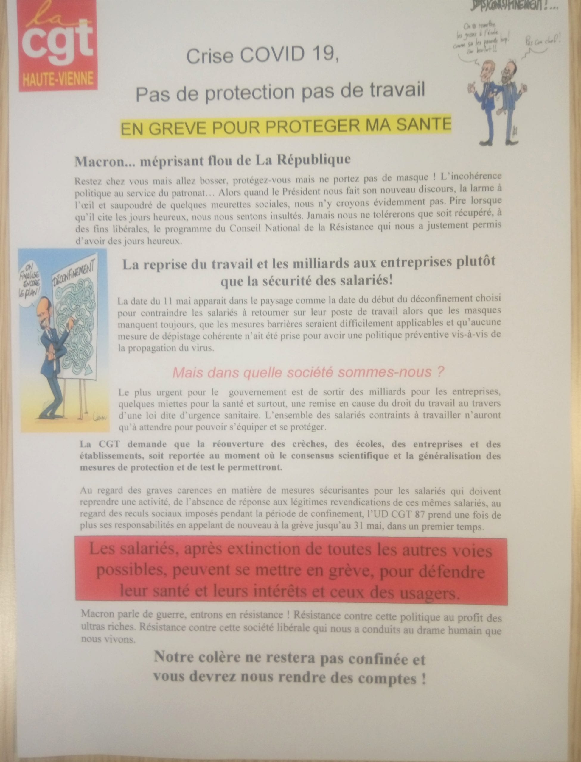 Covid 19 : Pas de protection pas de travail….en grève pour protéger ma santé !
