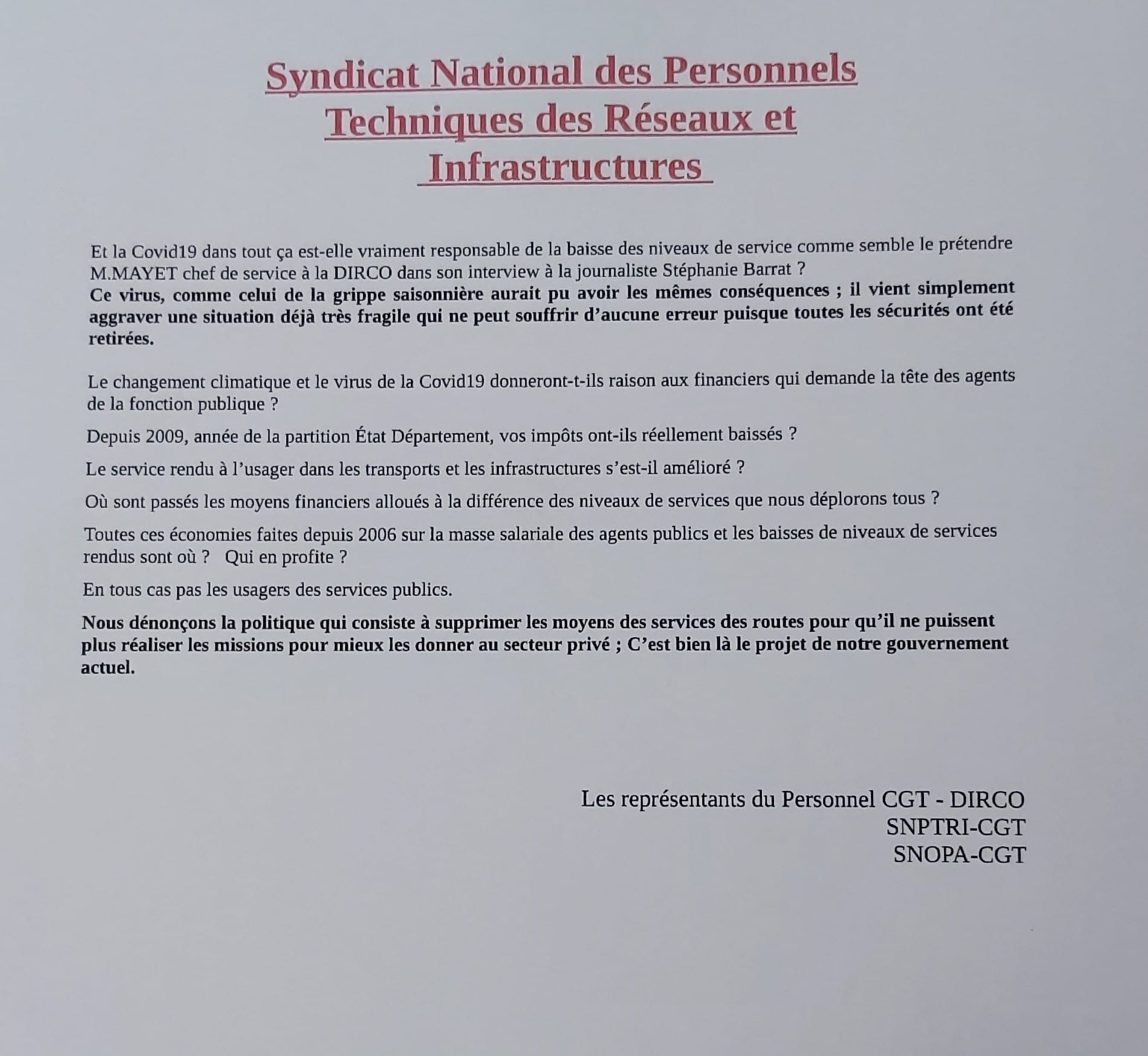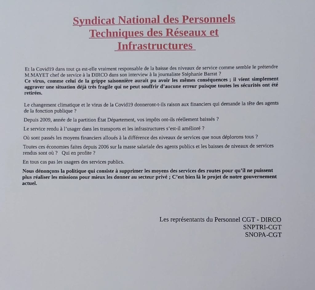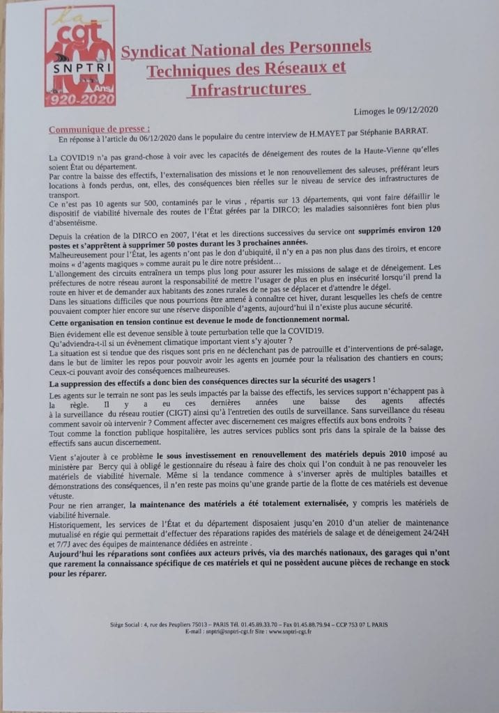 Réponse CGT DIRCO à l’article du populaire du 06 décembre