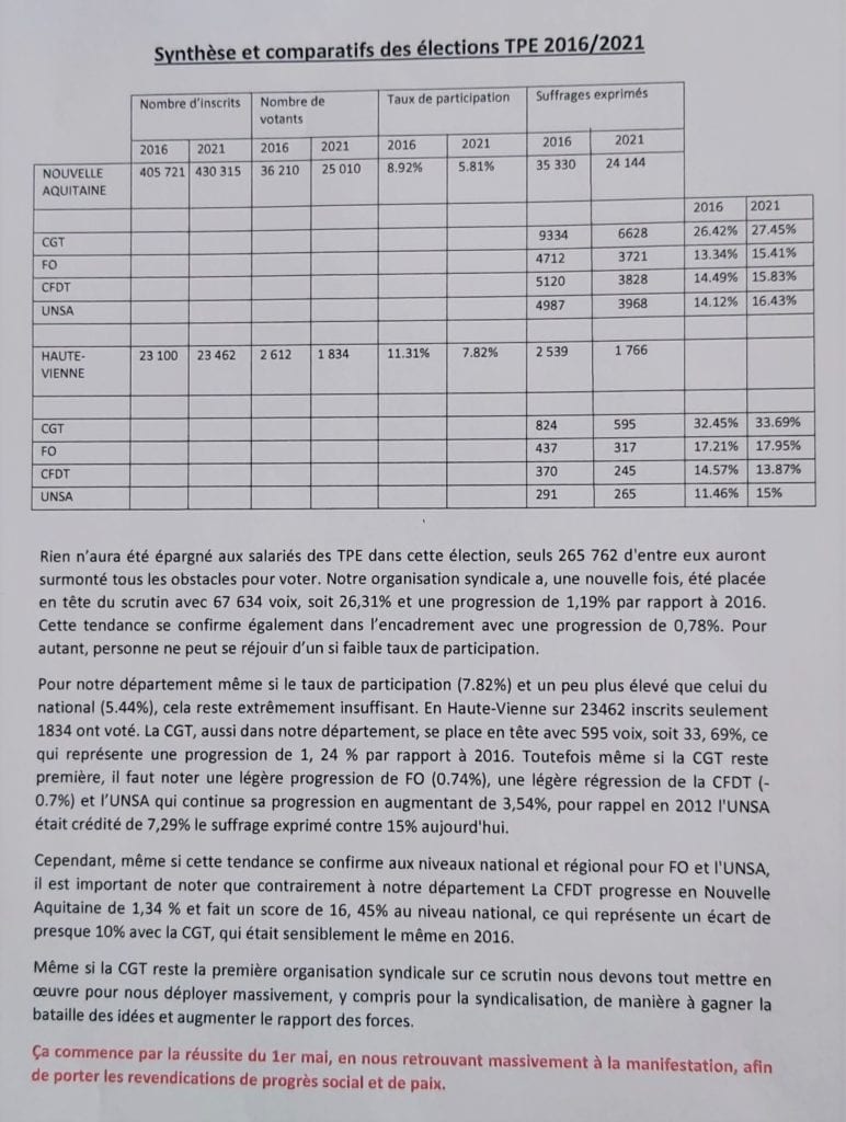Résultats nationaux et locaux des élections TPE