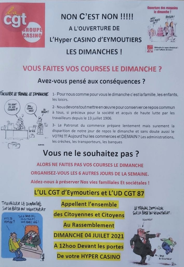 Non à l’ouverture les dimanches de l’Hyper Casino d’Eymoutiers !