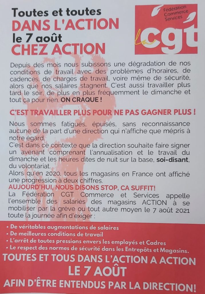 Samedi 7 août, soutien aux salariés du magasin ACTION de Limoges !