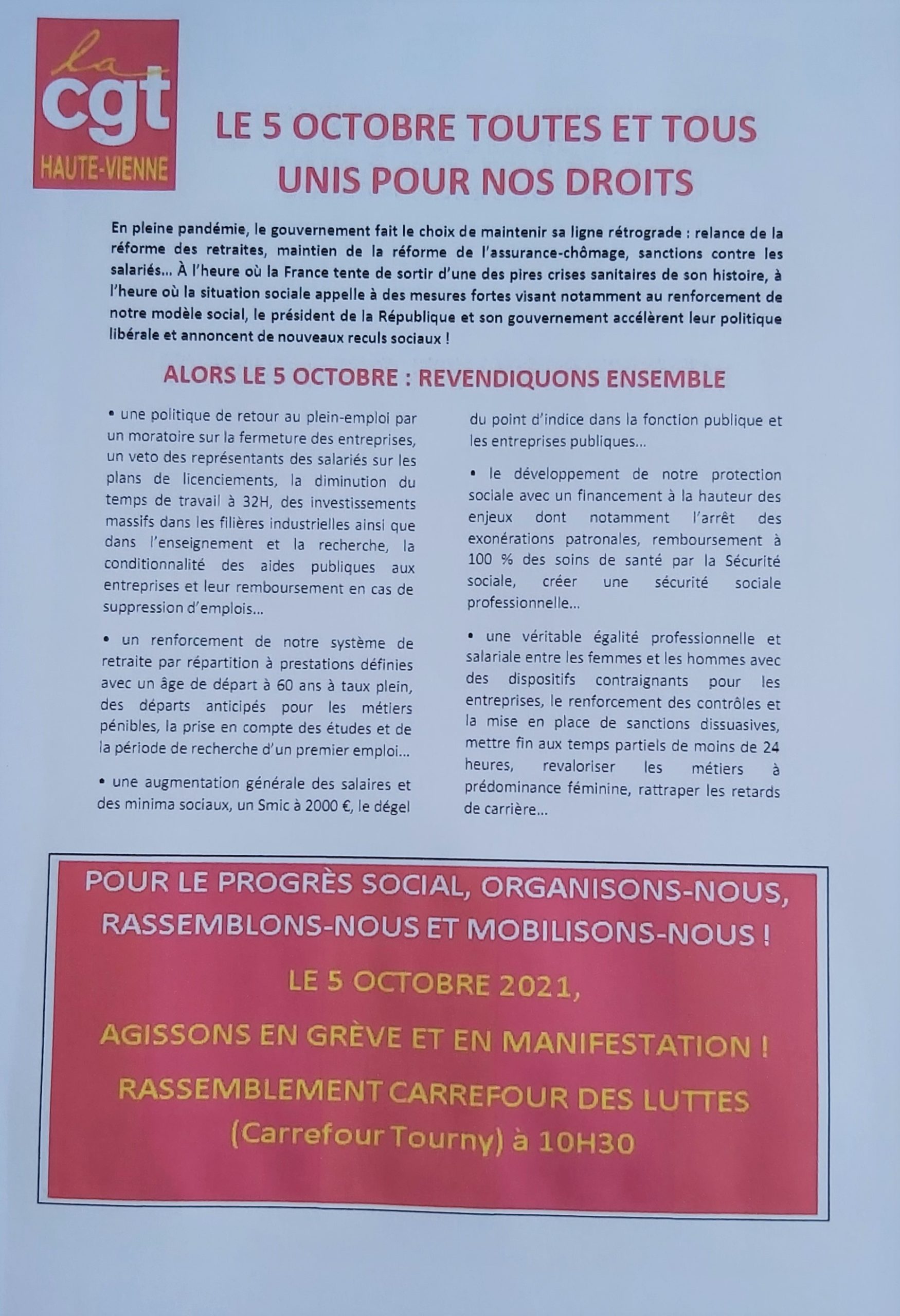 Grève et manifestation le 5 octobre 10h30 carrefour Tourny