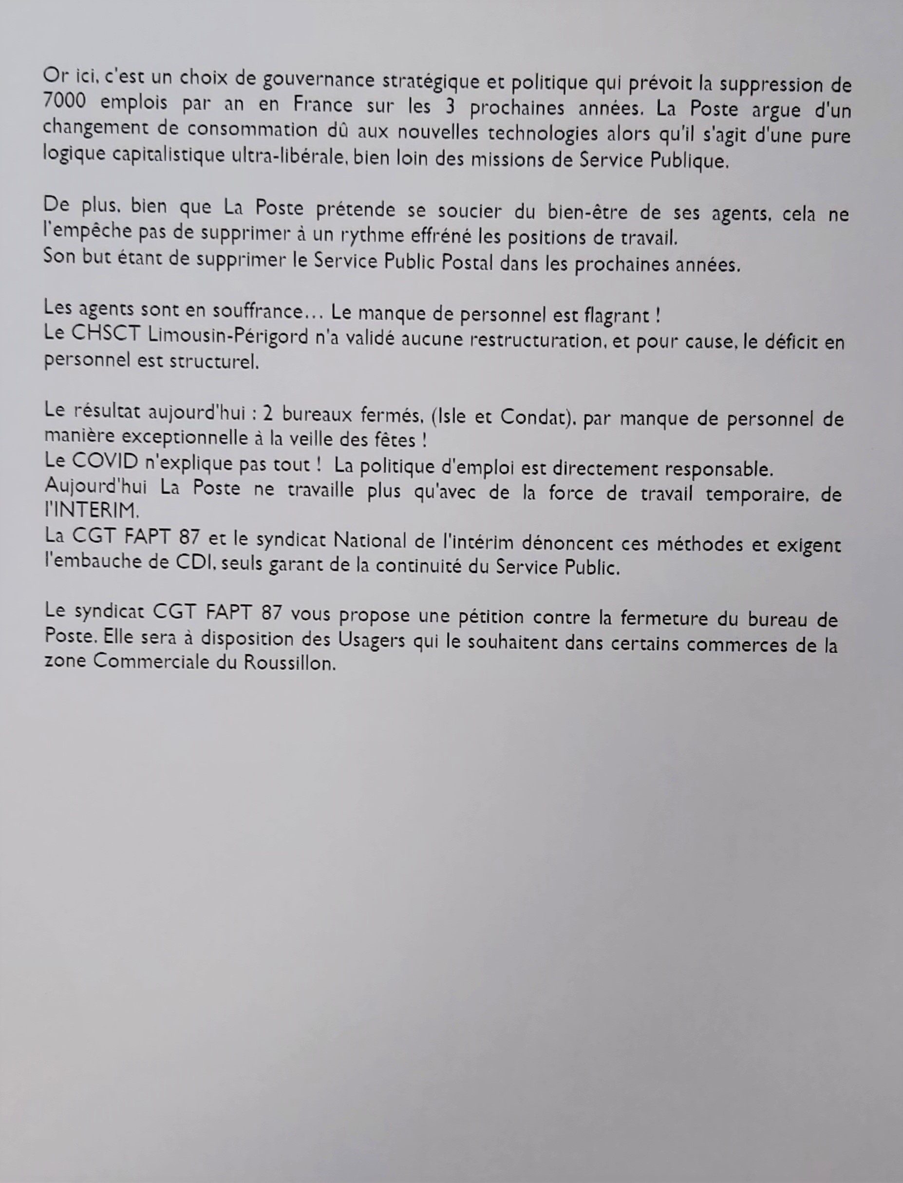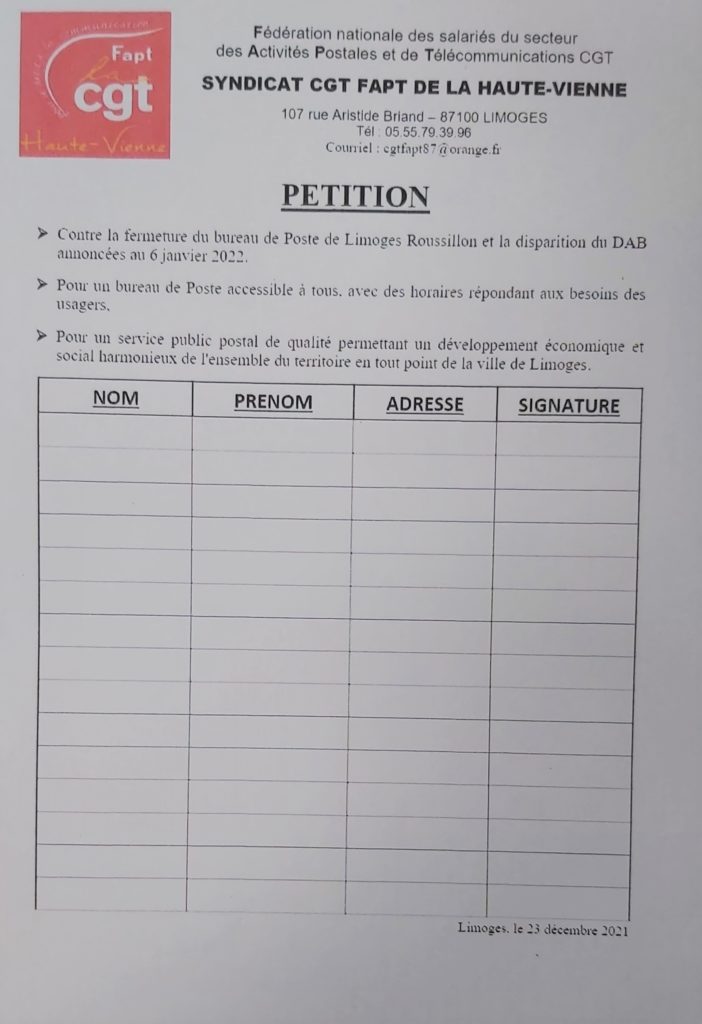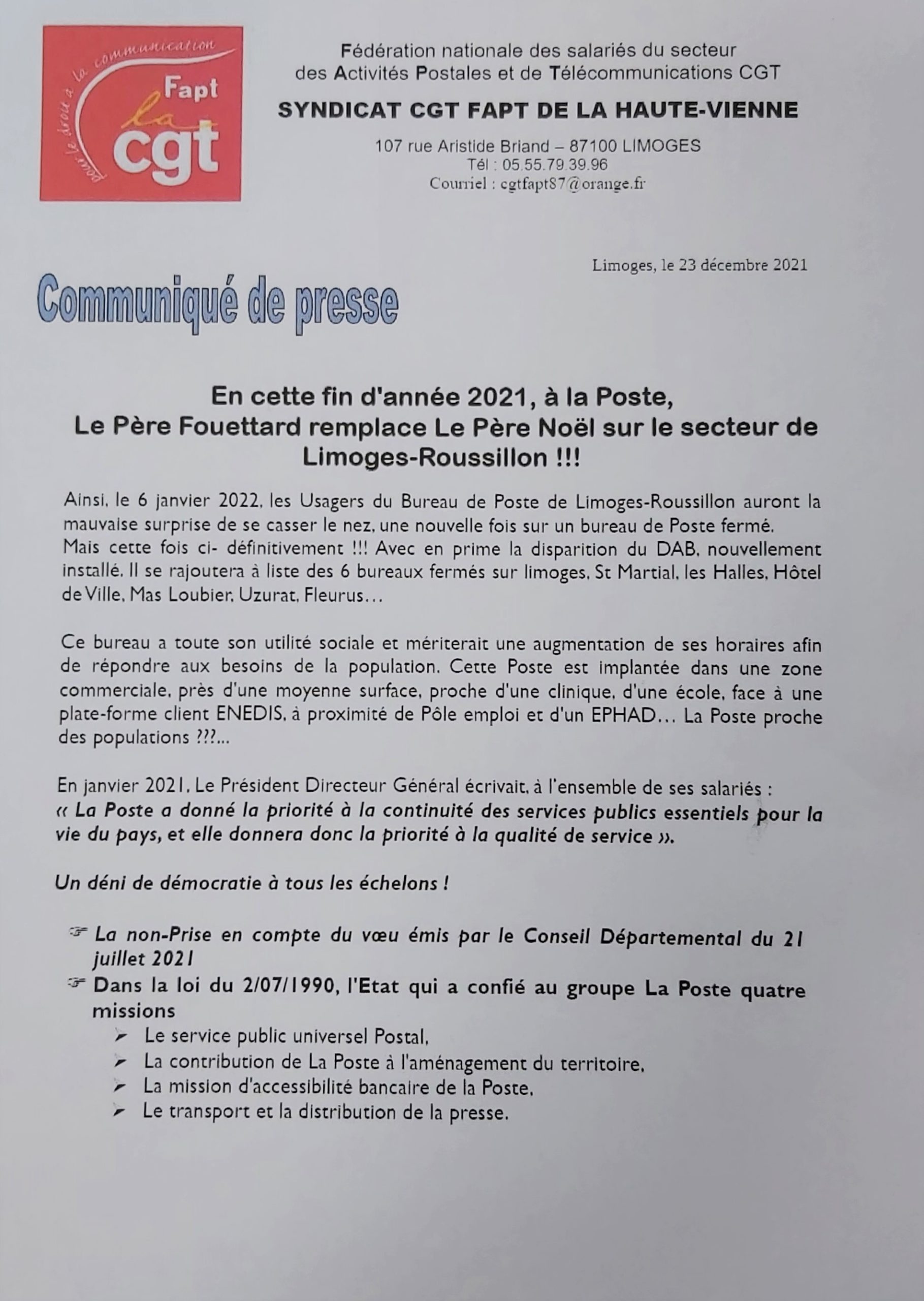 Communiqué de presse de la CGT FAPT 87