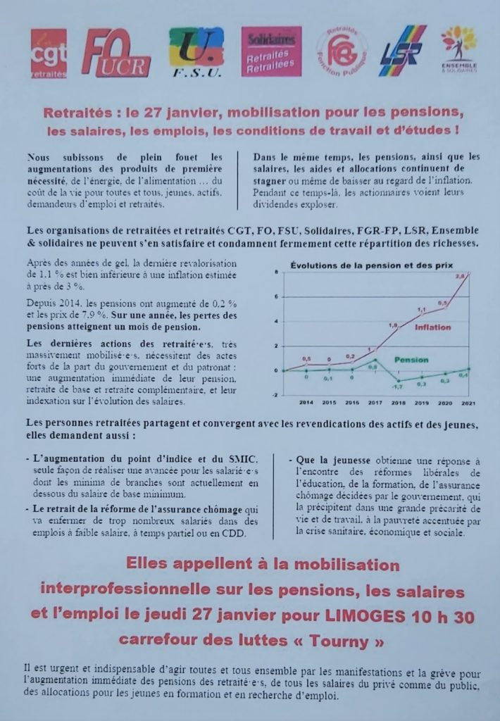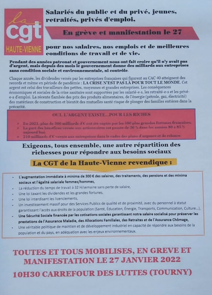 Grève et manifestation du 27 janvier : 10h30 carrefour Tourny