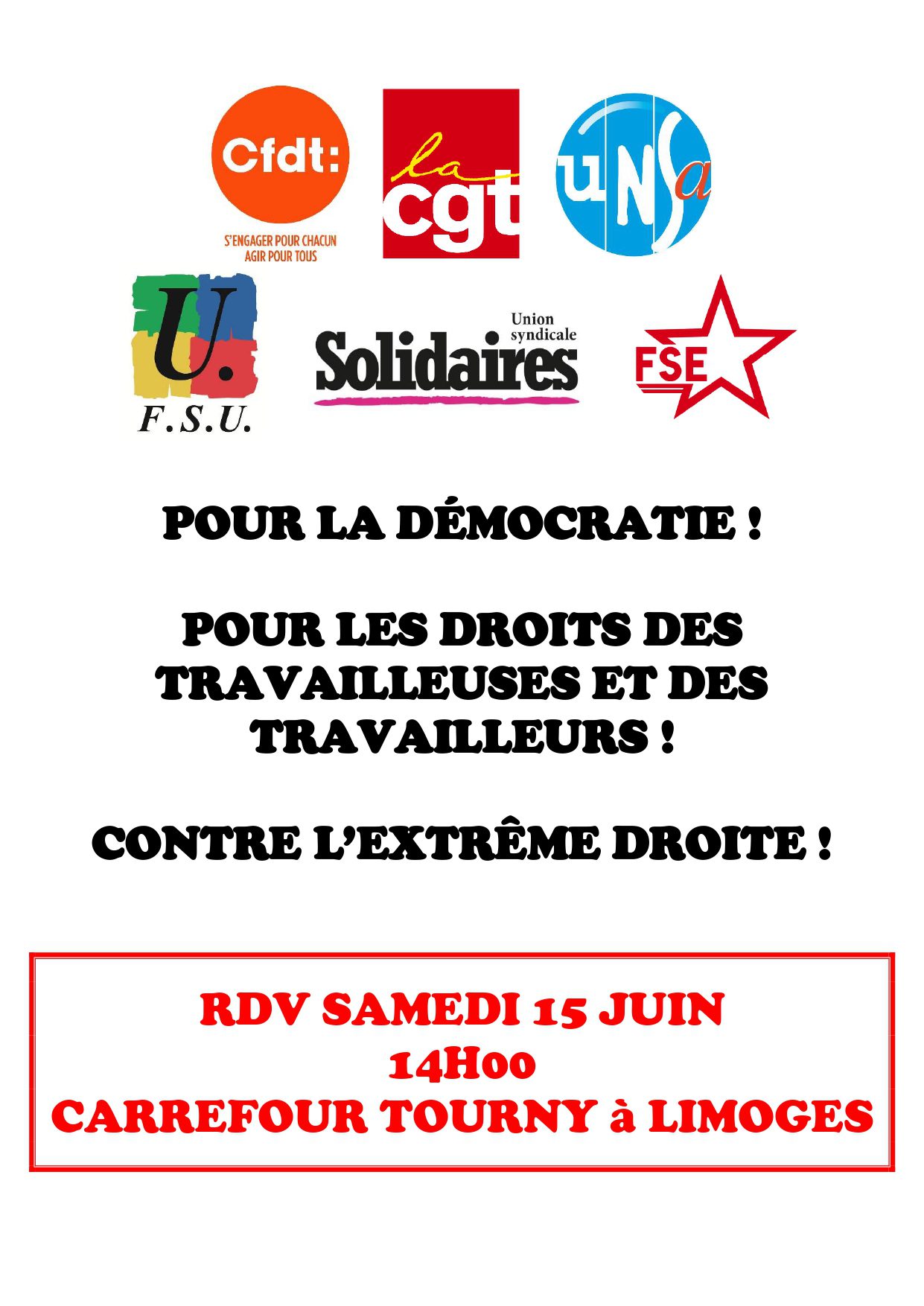 Contre l’extrême droite, RDV samedi 15 juin à 14H00 !