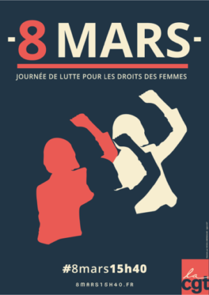 Communiqué de presse de l’UD de la Haute-Vienne L’Union départementale de la CGT 87 organise le 08 mars un rassemblement à 15h40 place d’Aine avec appel à la grève pour dénoncer les inégalités femmes-hommes. 15h40, l’heure où les femmes travaillent gratuitement chaque jour sur la base d’une journée standard. Les femmes sont toujours payées 26% de moins que les hommes… ⇒ parce qu’elles sont 30 % à travailler en temps partiel ⇒ parce qu’elles sont concentrées dans des métiers dévalorisés […]